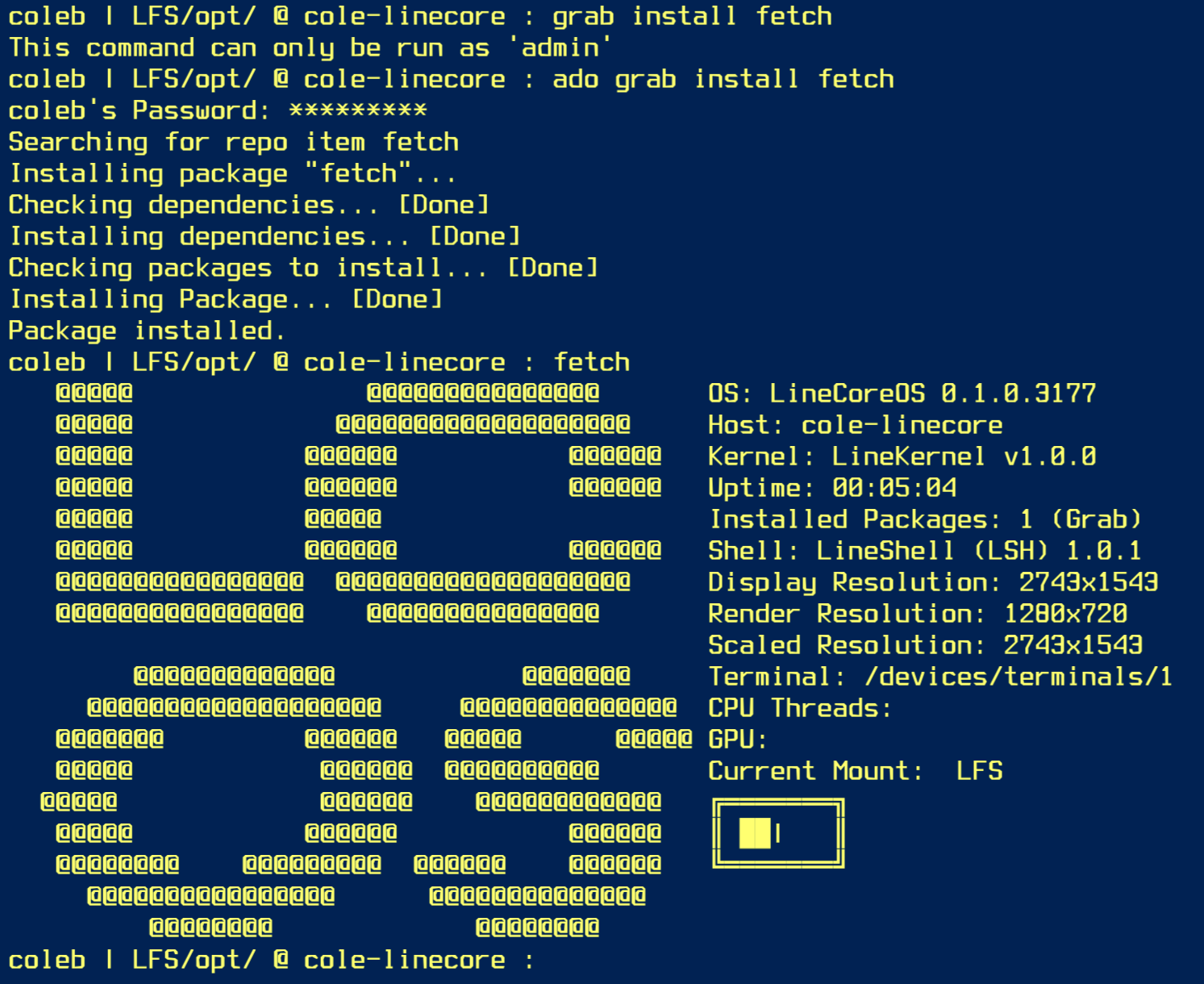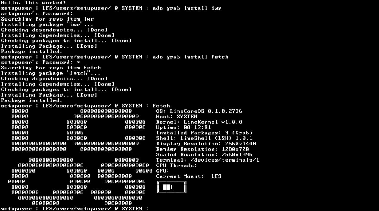 Around 10 days later, colebohte made changes to this version, such as the new INIT system and Line DM (Line Display Manager), which loaded into LDX (Line Display Extension) or a terminal.